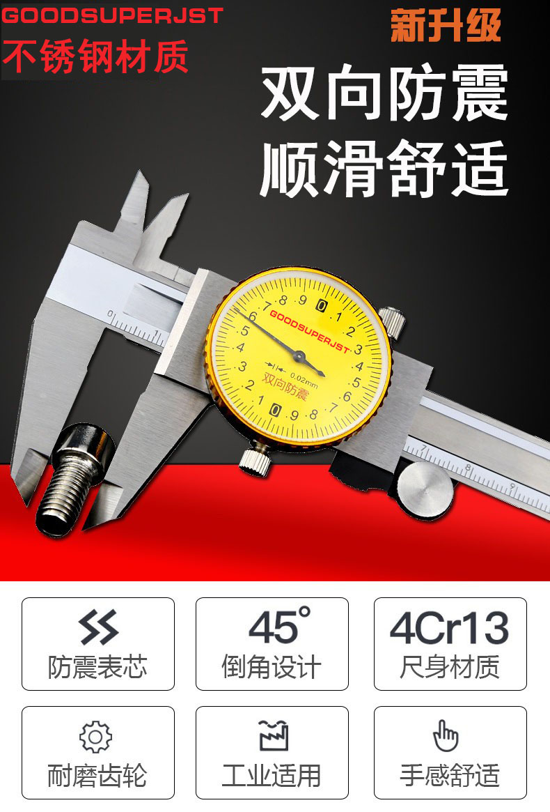 高精度带表卡尺表盘卡尺0-200 0-300精度0.01 0.02