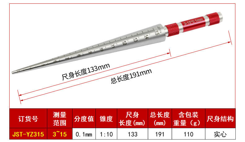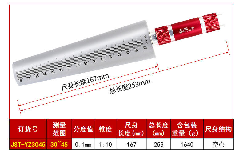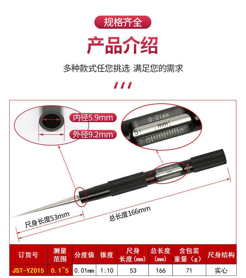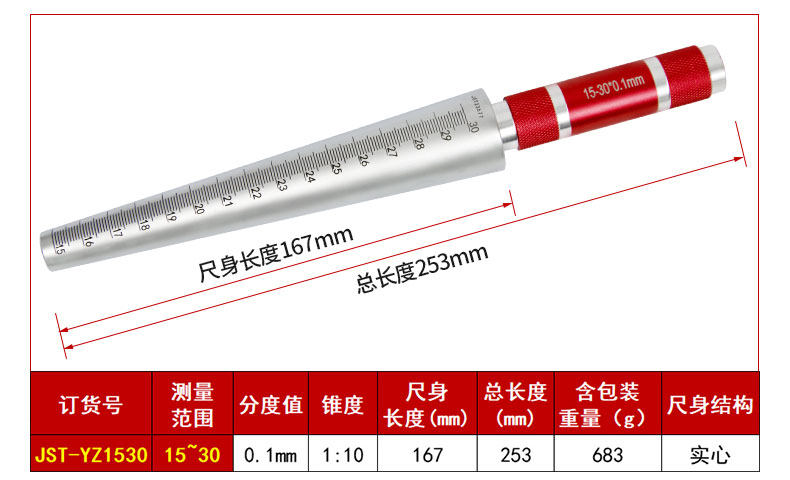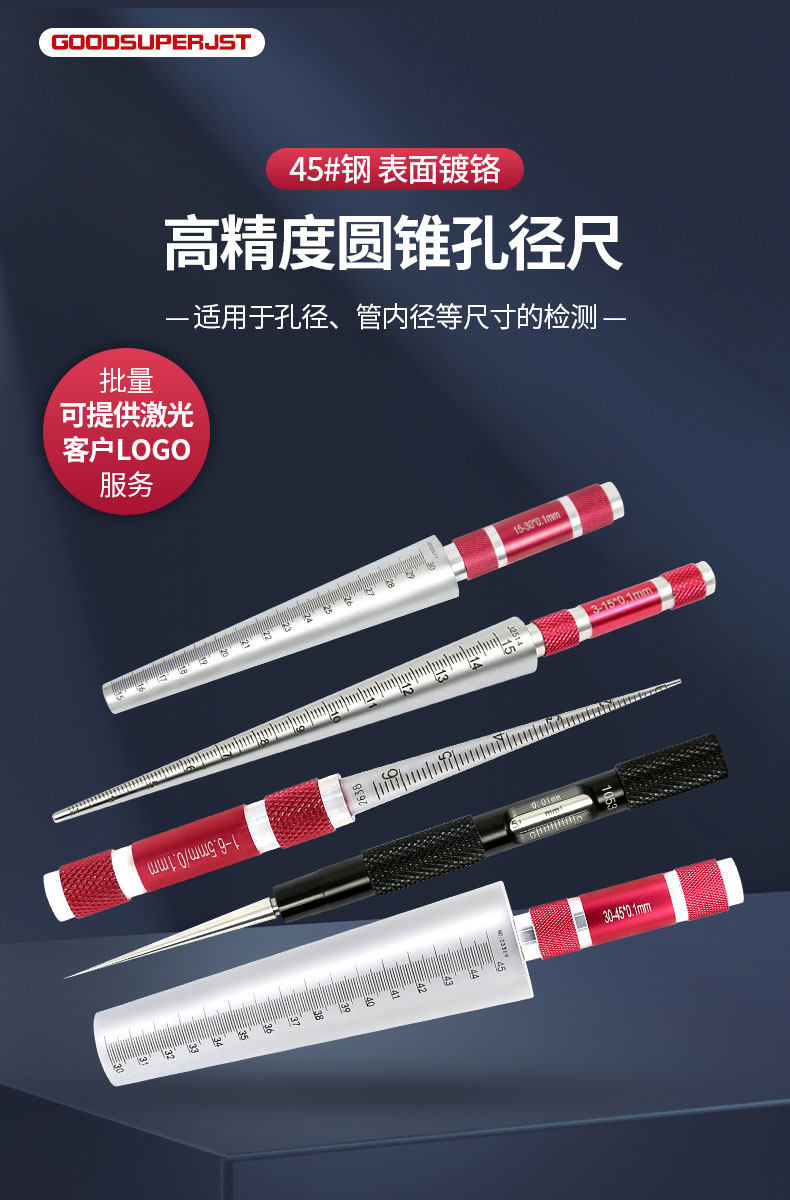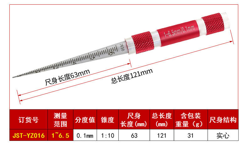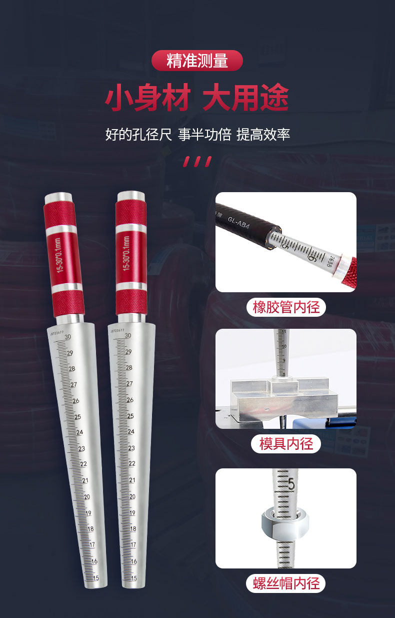 圆锥孔径尺橡胶管内径量规手柄颜色可订制