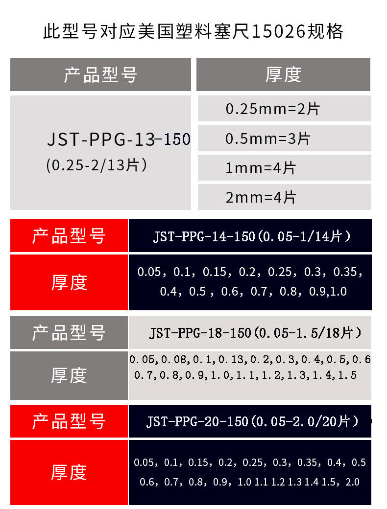 新款150mm加长塑料塞尺0.05-2mm加长款塑胶厚薄规