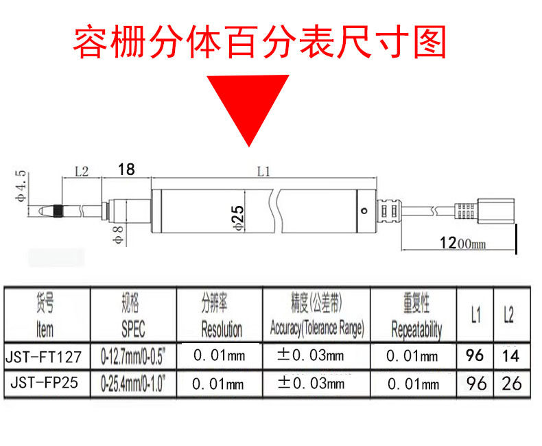 容栅式分体垂直百分表JST-FT12/JST-FT25