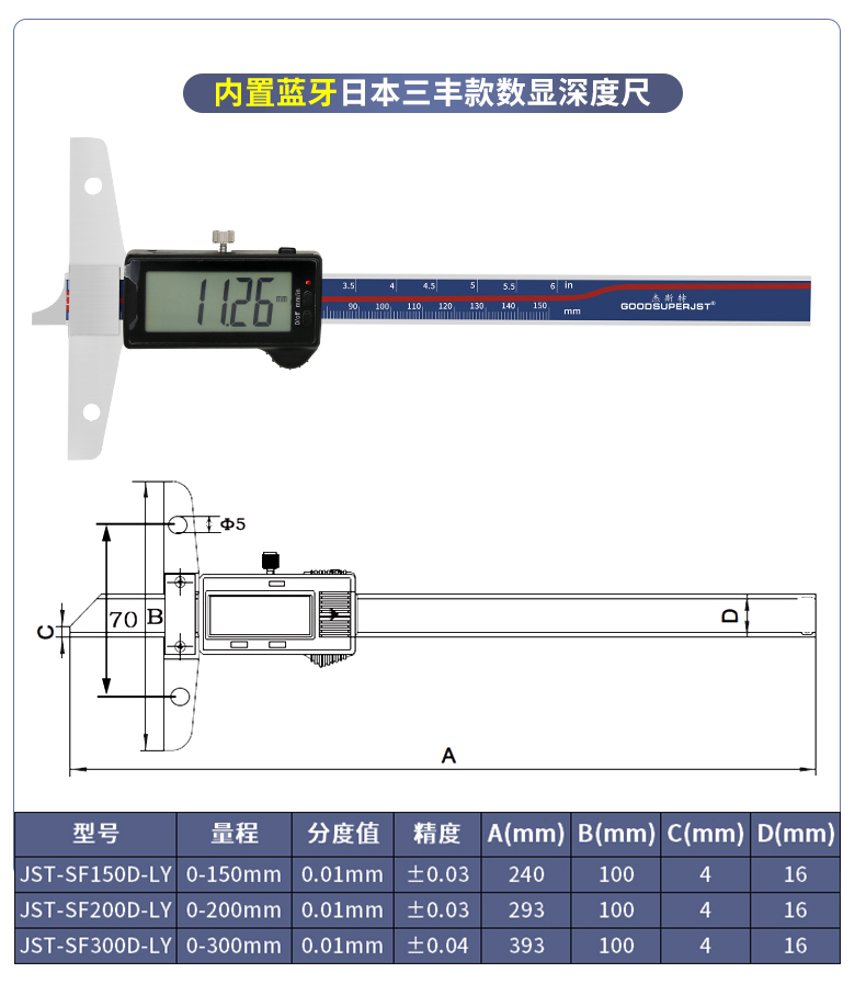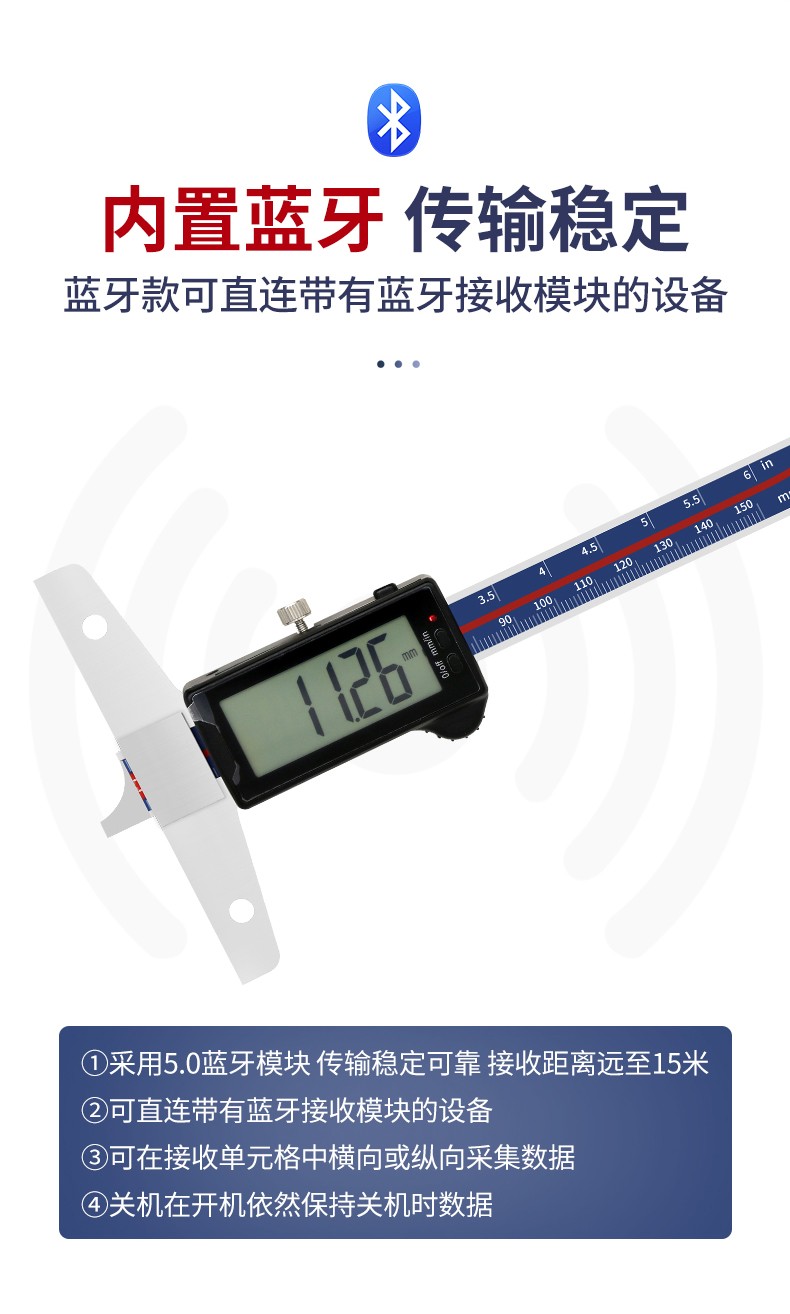 内置蓝牙数显深度尺0-150/0-200/0-300